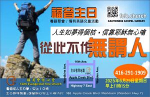 - 從此不作無謂人 – 粵語福音主日從此不作無謂人 – 粵語福音主日 人生如夢得個桔,信靠耶穌無心噏 #福音主日 6月29日為教會福音主日, 主題… Read more: 從此不作無謂人 – 粵語福音主日